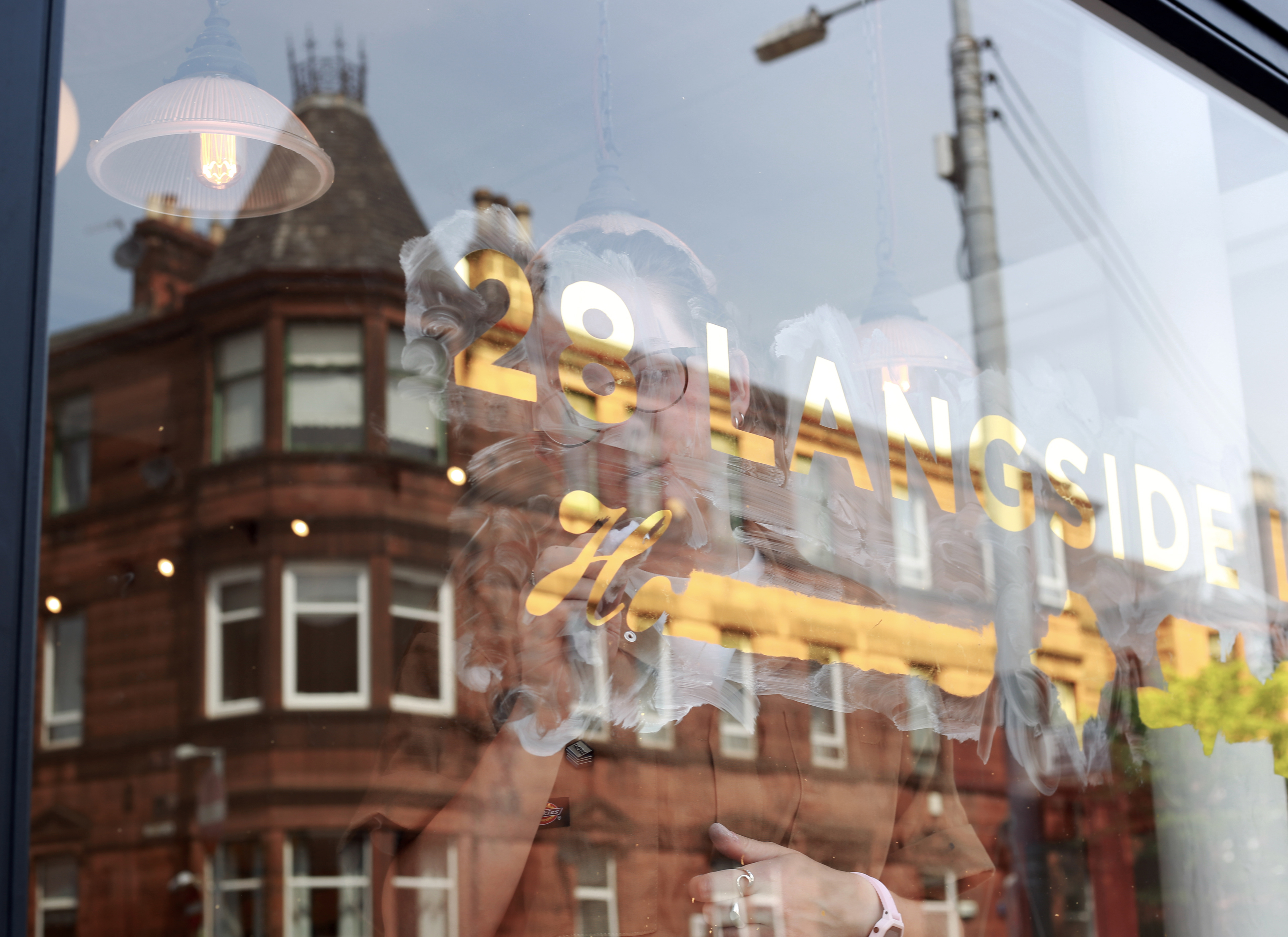 After previously painting 28 Langside's window, Richard from the homeware and lifestyle shop asked me to upgrade his window signage with some extra info. I designed a new piece, scraped off my old work and used 23.5kt gold to give it that bit of added luxury. A big thank you to Dean Stephen for the photographs of the process and the final piece.