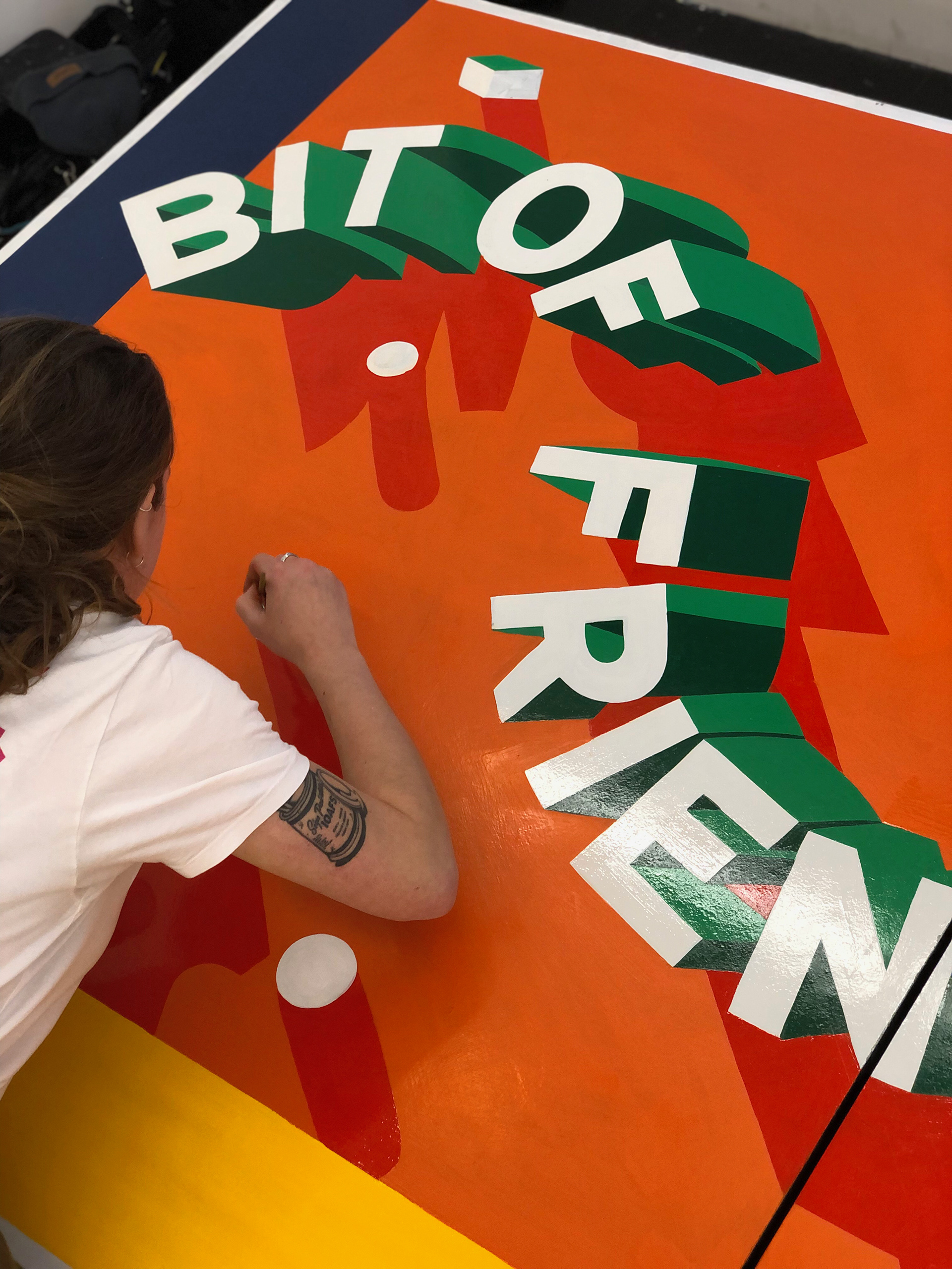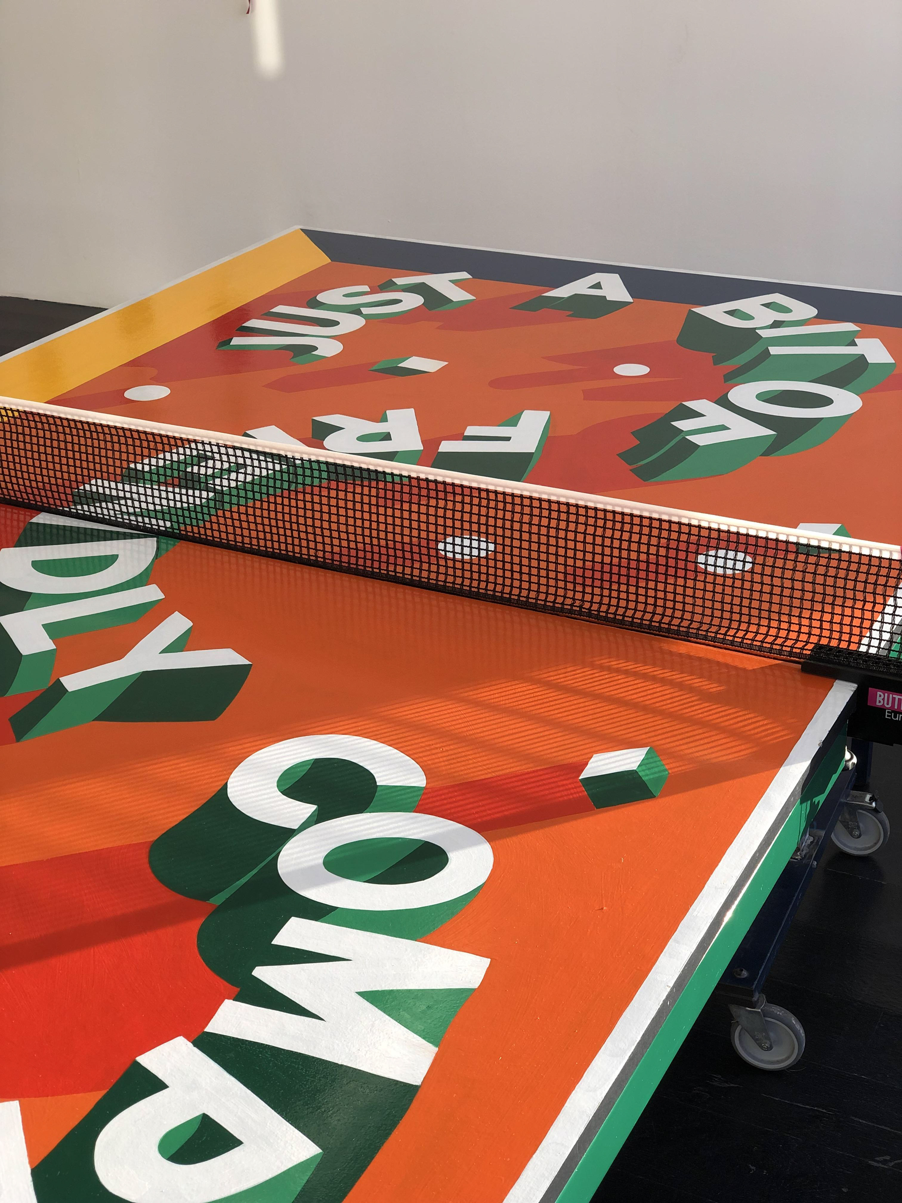 Designed and painted for BACKSP!N, an exhibition of table tennis paddles and table curated by Pim Pam Creative to raise funds for Drumchapel TTC. Designed and painted fully by hand.