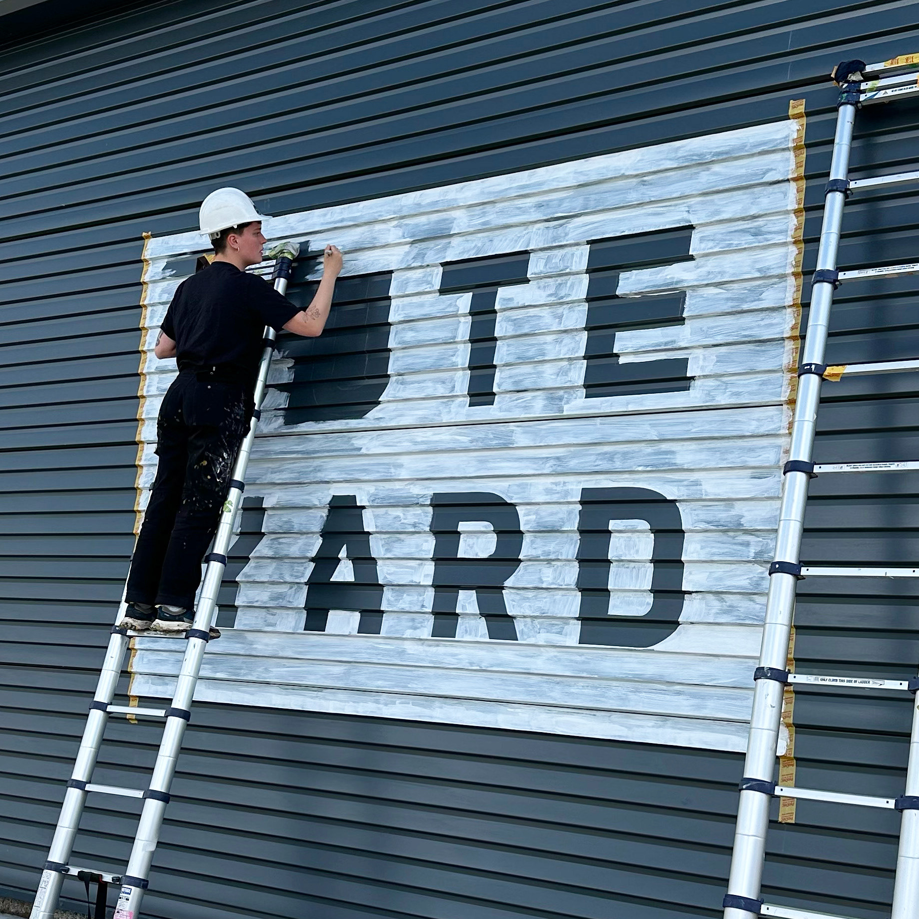 Two large scale paintings completed for Bute Yard, an event space on the Isle of Bute. Logo Design by Faith Studio. Assisted by Hana Lindsay of Sure Signs.