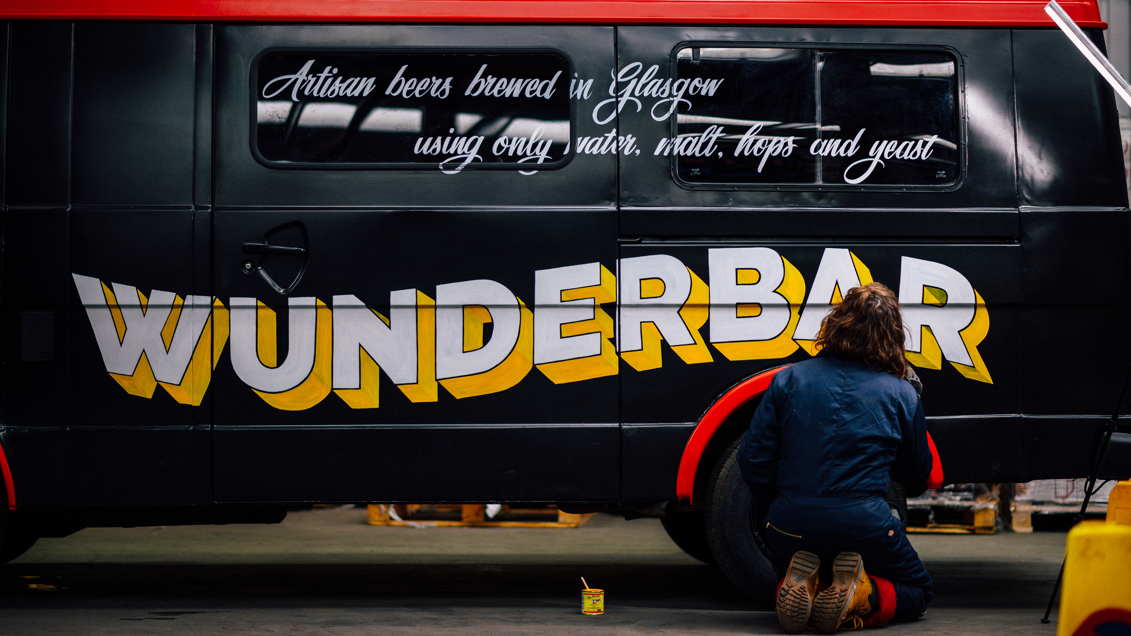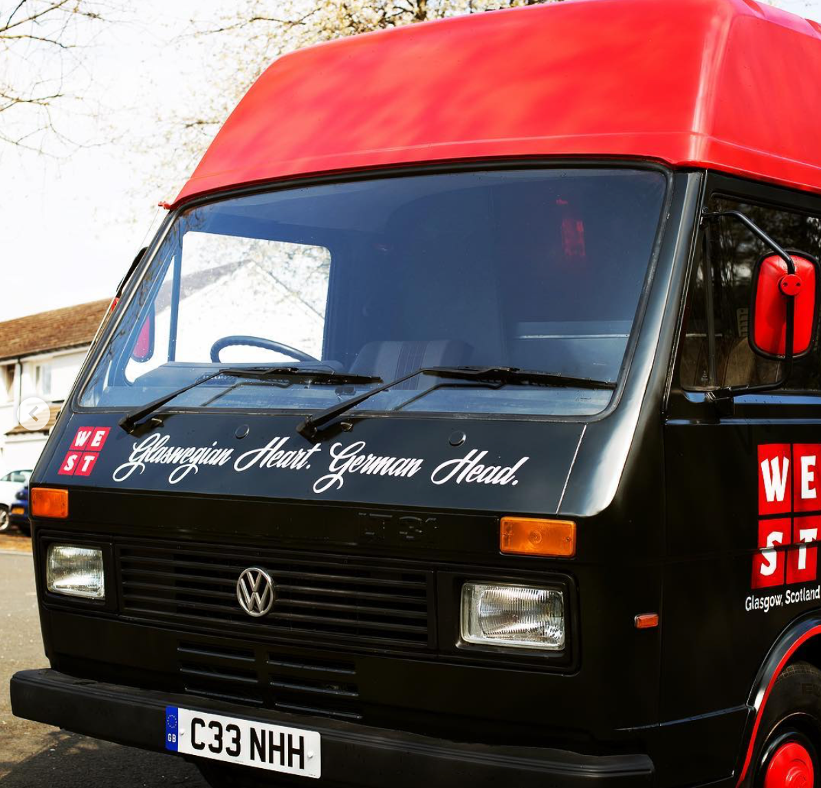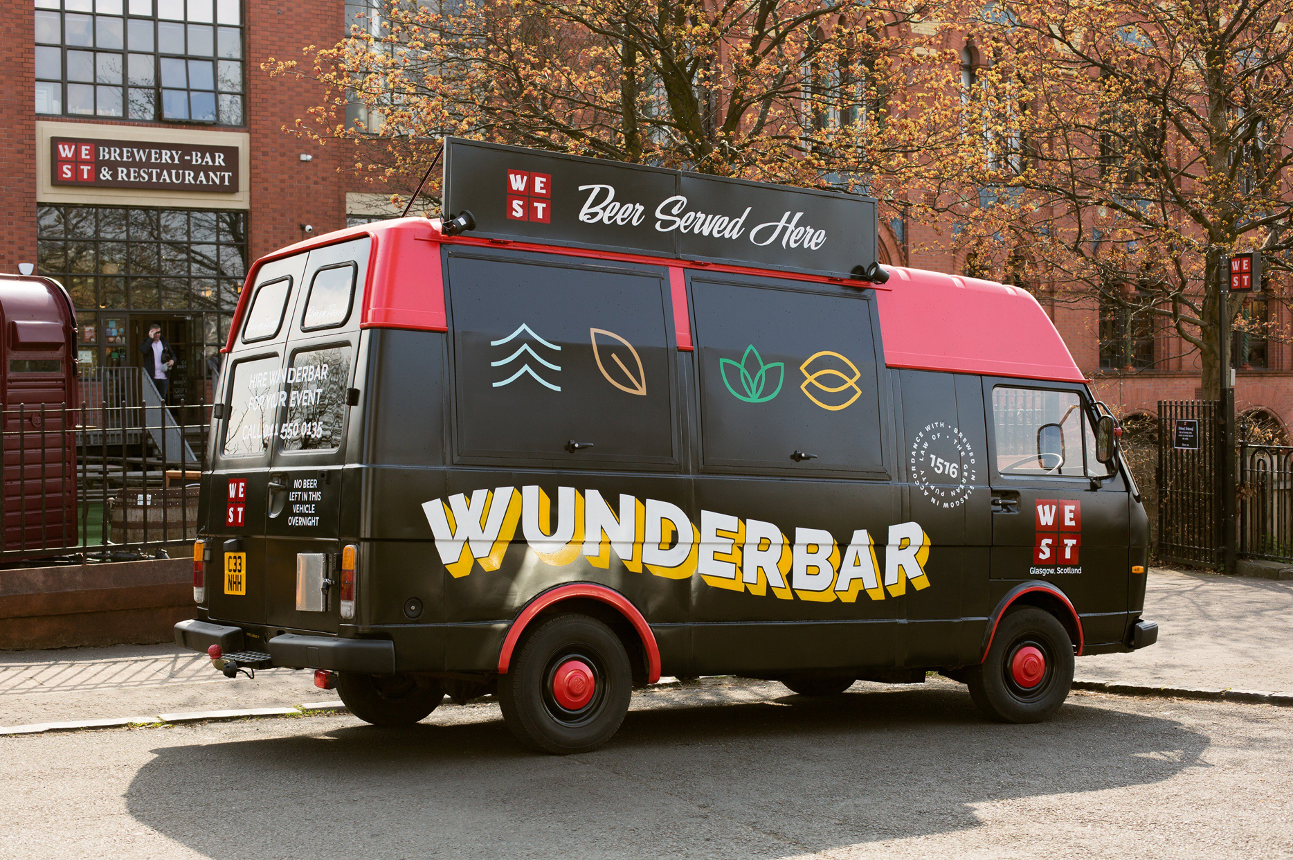 I was approached by WEST to bring life to their 'Wunderbar' – a converted 1984 VW camper van kitted out with a fully functioning four-tap bar. Taking inspiration from traditional truck lettering from the 50s and 60s, I created a contemporary typographic style which works with the contours of the van and incorporates the bold WEST house style. Using hard wearing enamel paints I hand painted the van and its accompanying tow ready for it to tour the country in the summer.